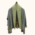 Com um padrão gráfico marcante e entrelaçado, o Casaco Rodado Trevo é uma celebração do movimento e da individualidade. A sua textura rica, inspirada em motivos tradicionais, confere-lhe uma presença visual forte e uma elegância descontraída.