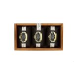 Embrulhados à mão em papel negro mate com motivos dourados e acondicionados em caixa artesanal de madeira gravada a fogo. O presente perfeito para luxo e cuidado diário.
